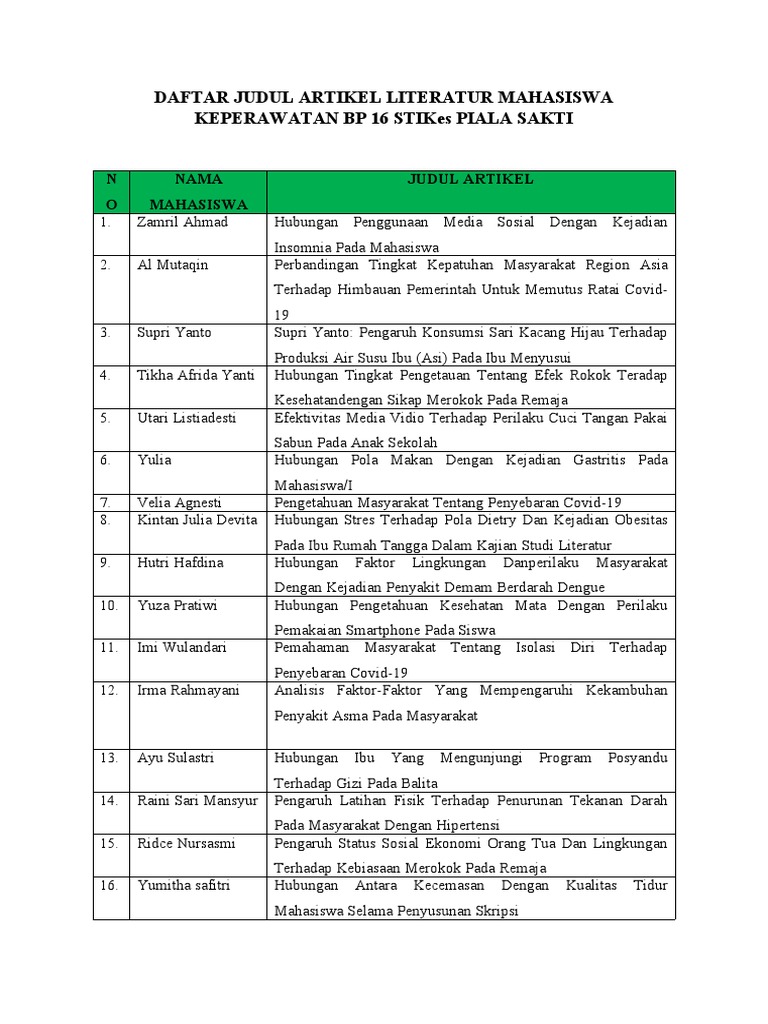 Judul Literature Review Mahasiswa Keperawatan Bp 16