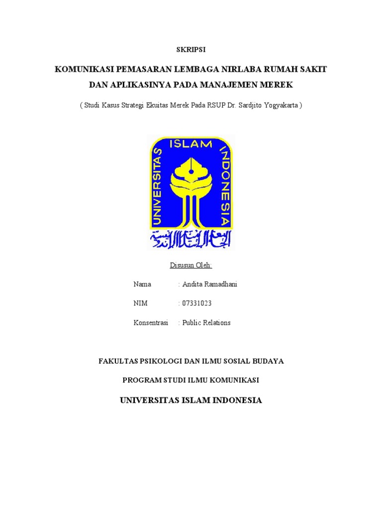 Skripsi Depan Pdf Judul Skripsi Strategi Komunikasi Public Relations Dalam Niken Lestari Pdf Document