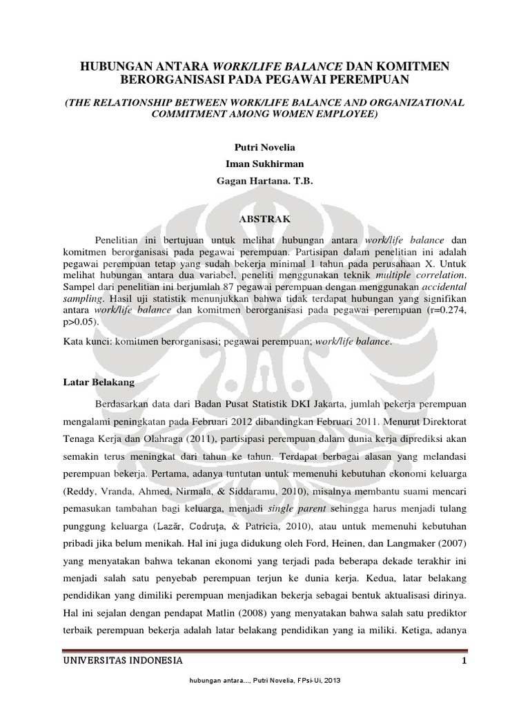 Penelitian skripsi work life balance. Hasil penelitian menunjukan adanya pengaruh signifikan positif dari work life balance terhadap job satisfaction karyawan Dinas Koperasi dan Usaha Kecil YZ dengan. This study uses the scale of Career development and work life balance as a data collection technique. WORK-LIFE BALANCE PADA KARYAWAN PT X Raden Michael Adityo Prakoso ABSTRAK Penelitian ini dilakukan dengan tujuan untuk mengetahui hubungan antara Psychological.