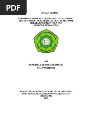 SKRIPSI PENGARUH PRENATAL YOGA TERHADAP KECEMASAN PADA IBU HAMIL DALAM MENGHADAPI PERSALINAN DI BPM KABUPATEN KULON PROGO TAHUN 2017. Judul Skripsi Teknik Geologi Terbaru - Apakah kalian sedang mencari Judul Skripsi Teknik Geologi. Lampiran 1 Contoh Sampul Proposal Skripsi.