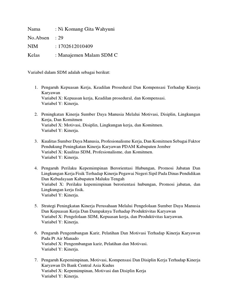 31 Variabel Penelitian dan Definisi Operasional. Contoh skripsi 3 variabel sdm Belajar menyusun skripsi ataupun proposal skripsi harus dibuat sejak semester perama dengan sering membaca contoh proposal skripsi pada akhirnya saat semester akhir mahasiswa tidak akan kesusahan ketika mengolah laporan tersebut. Setiap organisasi pemerintah dituntut untuk dapat mengoptimalkan sumber daya manusia dan bagaimana sumber daya manusia dikelola.