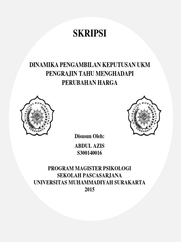 T30801-Darnella Puspitapdf 10 Jul 2012. Fakultas Psikologi USU merupakan institusi pendidikan yang juga memberi tuntutan kepada mahasiswa untuk menyelesaikan skripsi sebagai syarat untuk meraih gelar sarjana. Skripsi ini disusun untuk memenuhi sebagian persyaratan derajat sarjana Fakultas Psikologi Universitas Muhammadiyah Surakarta.