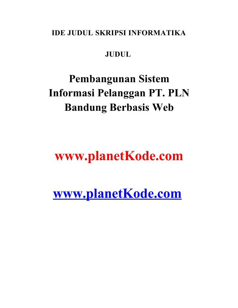Contoh Skripsi Pembangunan Sistem Informasi Pelanggan Pt Pln Bandung Berbasis Web Pdf